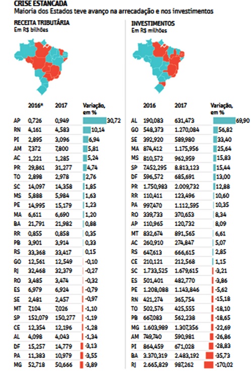 De acordo com o levantamento, após dois anos de queda, receita com tributos teve leve alta na maior parte dos Estados. Em 2017, a receita obtida com tributos alcançou a cifra de R$ 462 bilhões.