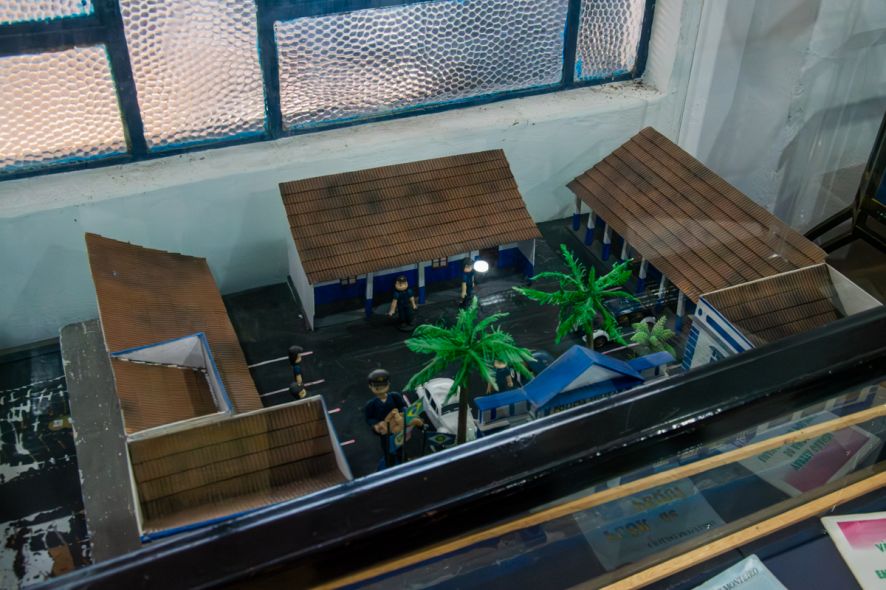 Logo na entrada, chama atenção a fachada tombada e o gradil, parcialmente formado por canos de carabinas. Parte da estrutura original é preservada e abriga espaços como a sala do comando e o setor de videomonitoramento.