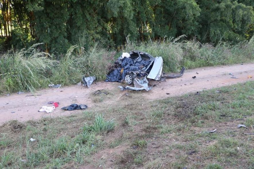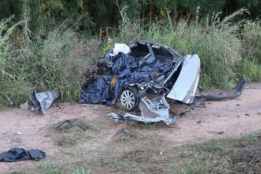Com o impacto, o carro parou às margens da rodovia. O veículo ficou completamente destruído.