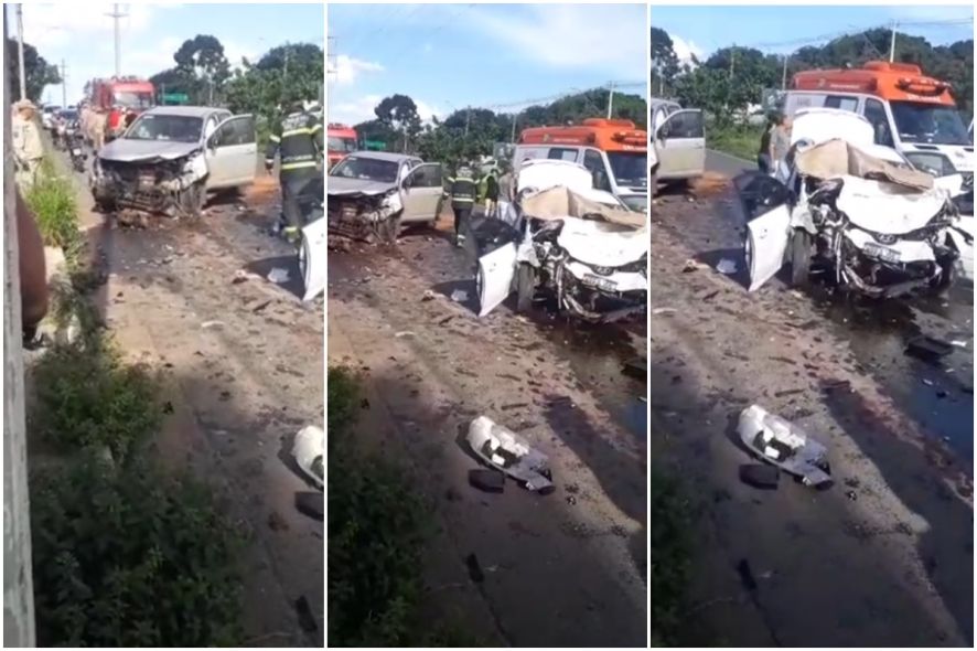 Uma colisão entre dois veículos, ocorrida na tarde deste domingo (7) na Avenida das Torres, no Bairro Jardim Imperial, deixou ao menos três pessoas feridas.