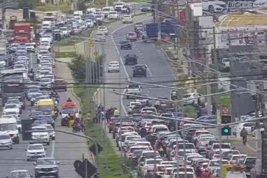 Diante do congestionamento, a Guarda Municipal orientou os motoristas a evitarem a Avenida da FEB. A equipe segue no local, fazendo o controle do fluxo de veículos.