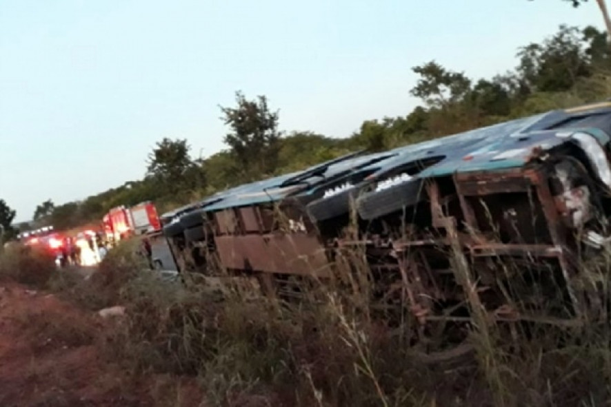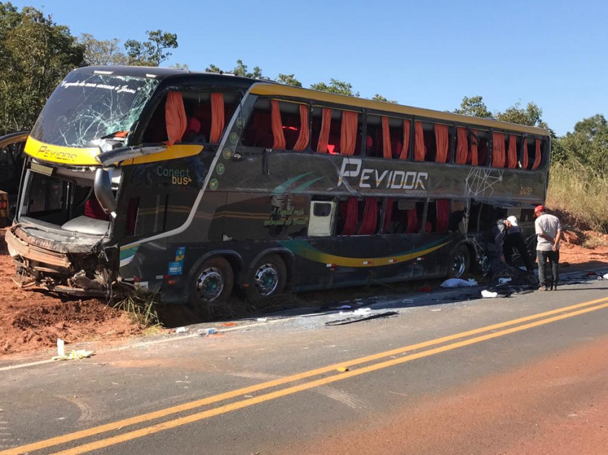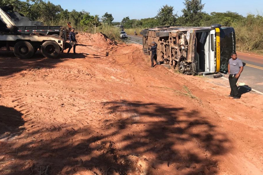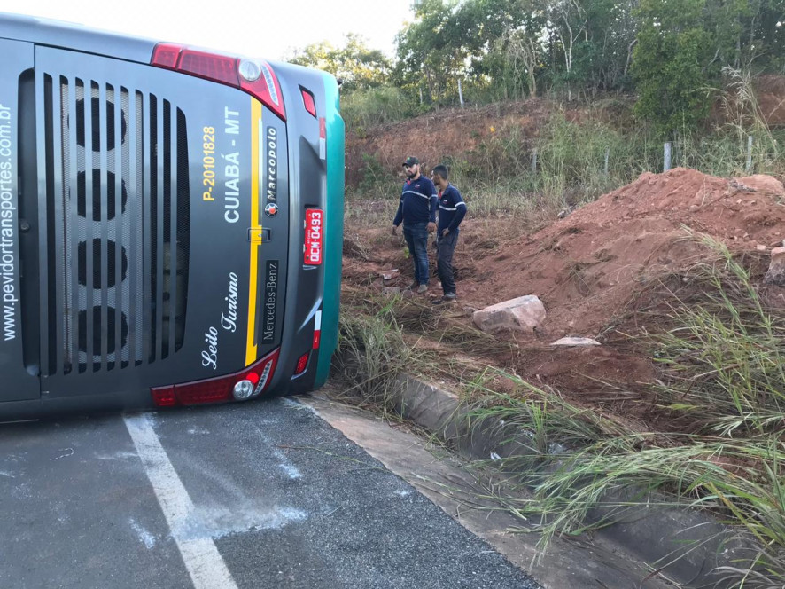 Para desviar, o condutor do ônibus - que levava mais de 50 pessoas para um evento evangélico em Lucas do Rio Verde (a 354 quilômetros de Cuiabá) – jogou o veículo para um barranco.