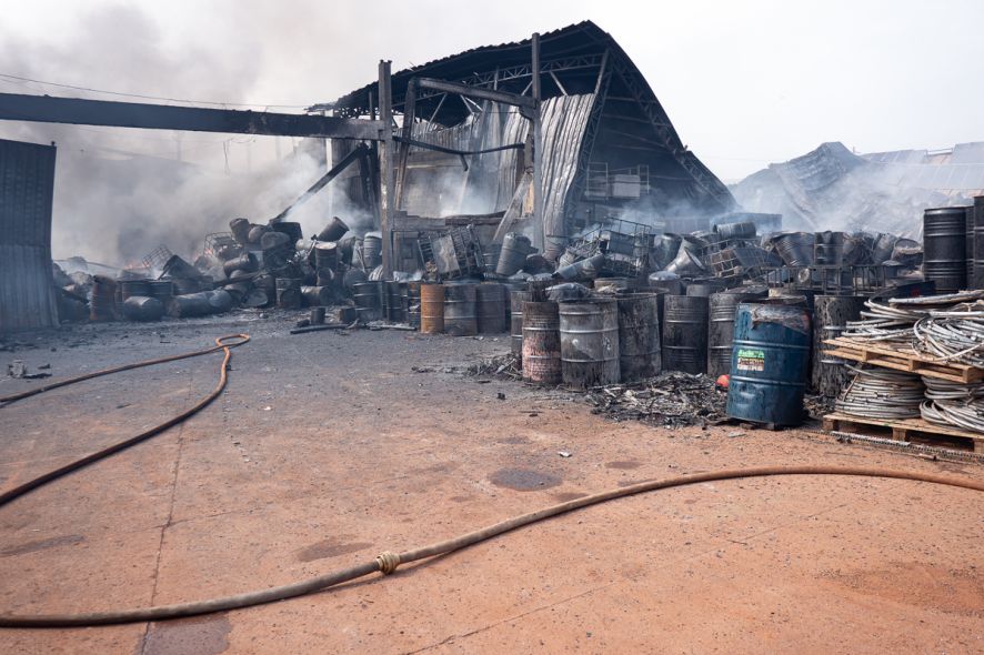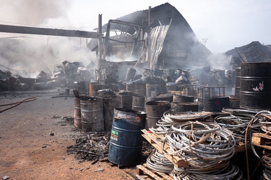 O Corpo de Bombeiros continua no local e realiza o rescaldo. Conforme o coronel, o trabalho pode durar o dia todo, visto a quantidade de produtos inflamáveis.