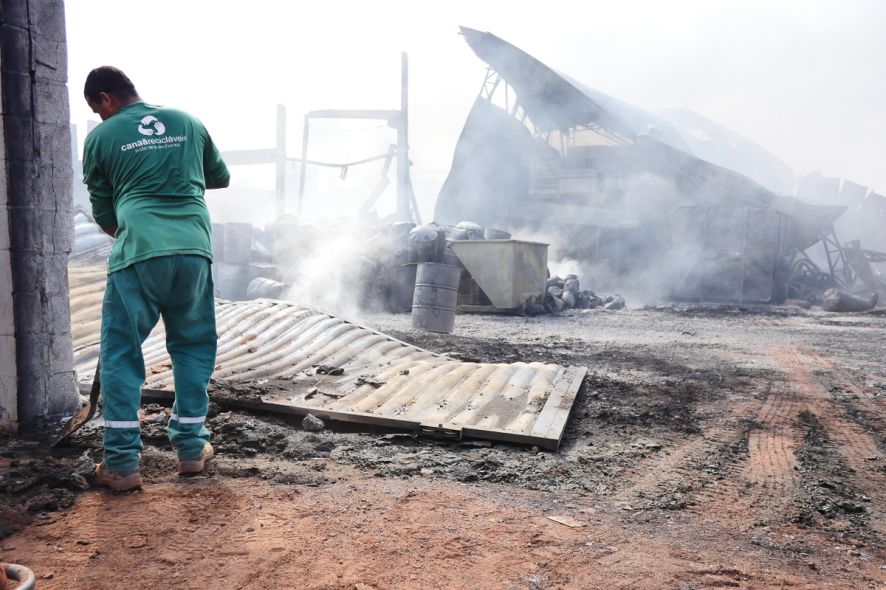 A área afetada da Canaã era responsável pela atividade de industrialização dos recicláveis, e estava atuando há cerca de seis meses quando foi tomada pelo fogo. João afirmou ainda que mais de 300 toneladas de material reciclável eram produzidas por mês na empresa.