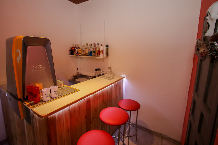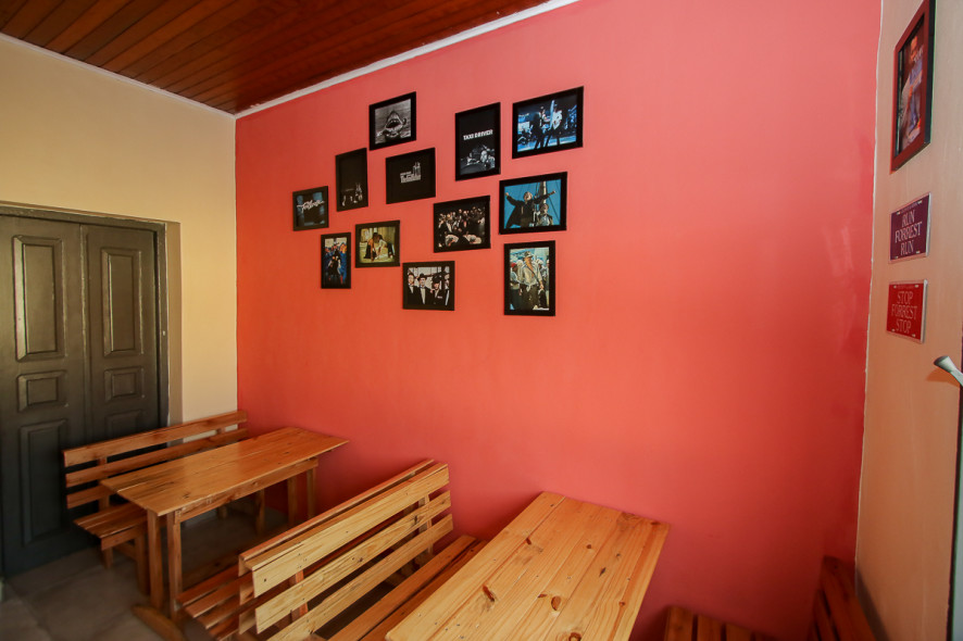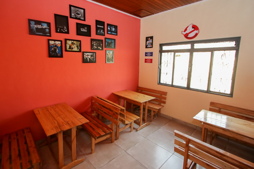 Já na sala dos clássicos, o ambiente é amplo, com algumas cadeiras e mesas, feitas pelos proprietários do bar.