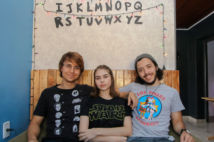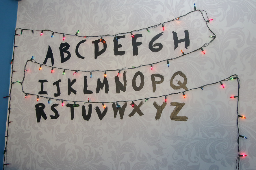 Em seguida, a parede da sala principal atrai olhares curiosos por conter o alfabeto com um luminoso ao redor, numa referência à série “Stranger Things”, exibida recentemente pela Netflix.