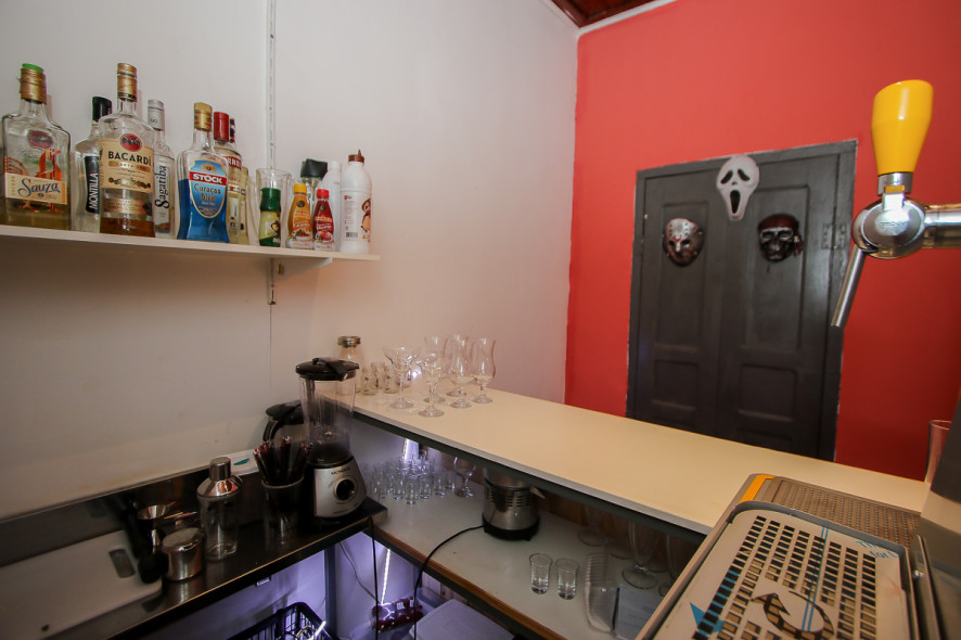 No espaço do barman, cuja temática são filmes de terror, foram colocadas máscaras de personagens assustadores, como Freddy Krueger e Jason, dos clássicos de “A Hora do Pesadelo”, 1984, e “Sexta-Feira 13”, de 1982, respectivamente.