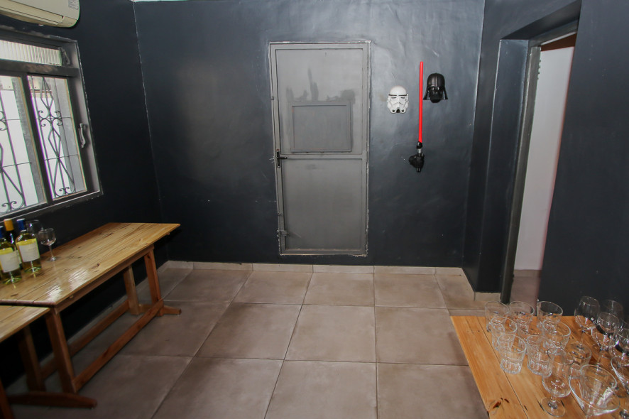 A sala de ficção científica, segundos os sócios, ainda está sendo trabalhada. No entanto, nas paredes também há os sabres luminosos e máscaras do vilão Dart Vader, de “Star Wars”, lançado em 1977.
