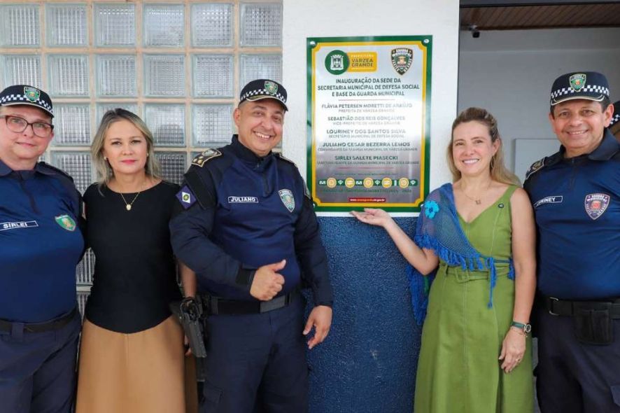 A Prefeitura de Várzea Grande inaugurou, nesta sexta-feira (28), a nova sede da Secretaria de Defesa Social e a nova base da Guarda Municipal. O novo espaço tem central de inteligência e monitoramento, refeitório, alojamentos, auditório, sala de reunião e galeria de ex-comandantes.