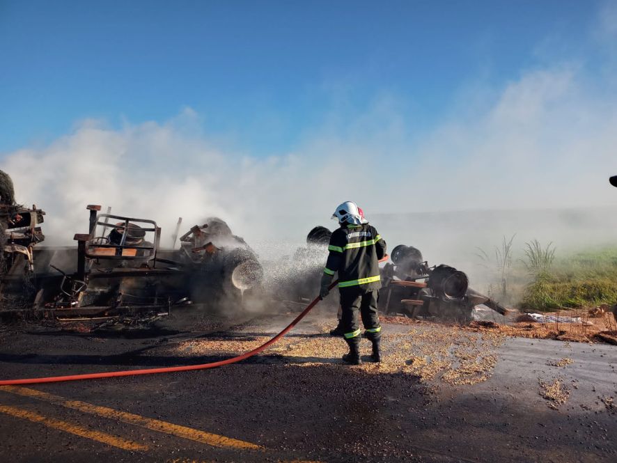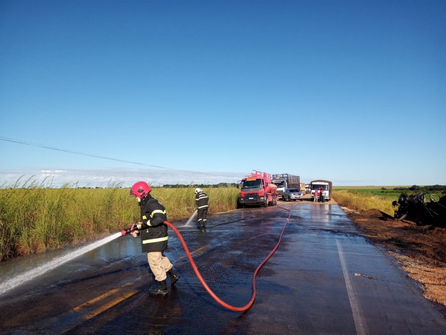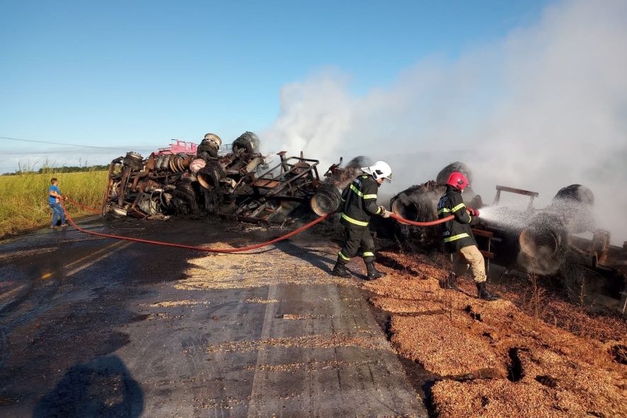 O motorista não estava no local quando os bombeiros chegaram, pois já havia sido socorrido. Os militares, então, começaram a apagar as chamas.