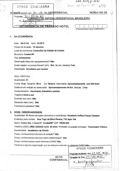 Segundo o psicólogo e presidente da Associação Mato-grossense de Pesquisas Ufológicas e Psíquicas (AMPUP), Ataíde Ferreira da Silva Neto, a liberação de documentos antes considerados confidenciais pela FAB é resultado dos esforços e pedidos feitos pela CBU (Comissão Brasileira de Ufologia).