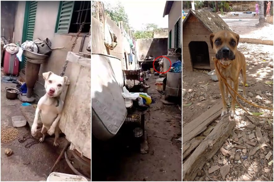 Uma das imagens mostra um policial revoltado com a situação. “Vou arrumar uma coleira no pescoço da senhora pra senhora ver se é bom. Se a senhora não tem condição de cuidar então não cria. Doa os cachorros”, afirmou o militar.