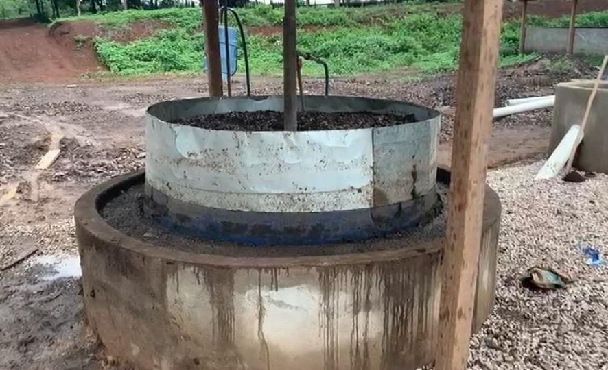 Sobre o sistema, Roberto explica que o biodigestor indiano tem o formato de um poço e se movimenta de cima para baixo de acordo com a produção do biogás. Ocupa pouco espaço e a construção é subterrânea com caixas de entrada para abastecer o biodigestor e uma caixa de saída da biomassa e biofertilizante, utilizadas para abastecimento de dejetos e retirada do biofertilizante, respectivamente.