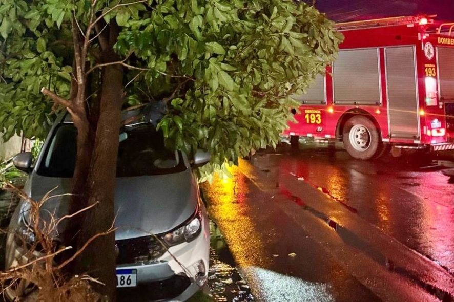 Em outros pontos, houve a queda de árvores sobre muro de residências, veículos e via pública, obstruindo o tráfego em várias ruas e avenidas. As equipes de bombeiros atuaram na remoção das árvores e na liberação das vias.