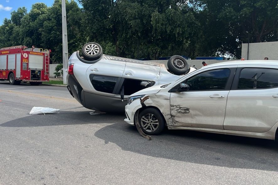 Uma mulher, ainda não identificada, ficou ferida após seu veículo capotar em um acidente na tarde desta segunda-feira (5), na Avenida Dom Orlando Chaves, em Várzea Grande.