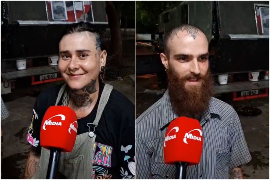 O casal Laura Roldan, da Costa Rica, e Lee Panchen, da Inglaterra, está acampado em um motorhome nos arredores da Arena Pantanal, em Cuiabá, desde a última terça-feira (28), aguardando o show da banda Guns N’ Roses.