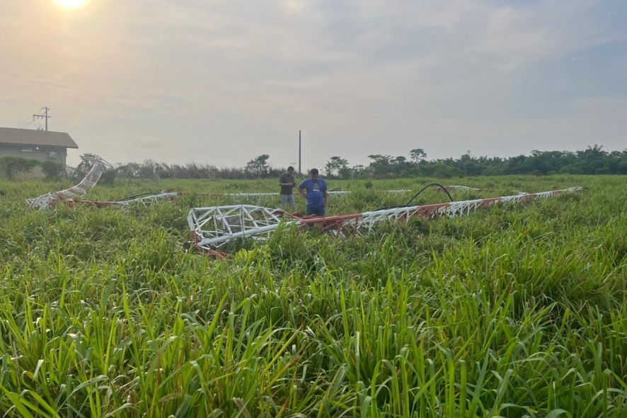 A torre de transmissão da Rádio Progresso FM, em Alta floresta (804 km), foi derrubada pela chuva e ventos fortes que caíram na cidade na noite de quarta-feira (1). Outras regiões também foram afetadas com quedas de árvores.