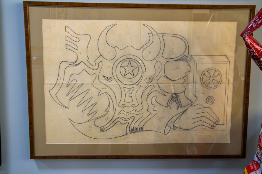“Aqui são aquelas carrancas que a gente tem lá do painel do Paiaguás”, relata ele ao mostrar o primeiro rascunho do que viria a se tornar o painel.