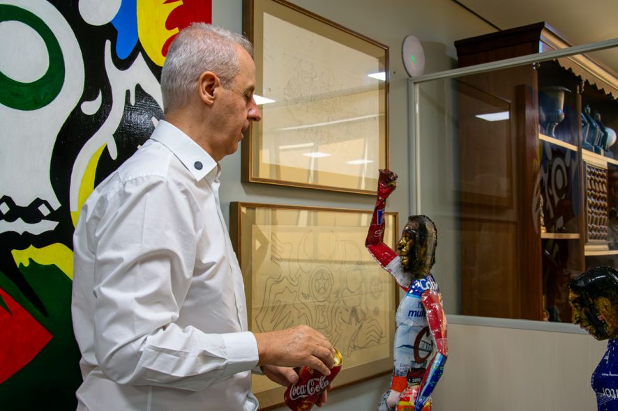 Com o tempo, peças de suas antigas coleções também se transformaram em arte, como a escultura em latas do rei Pelé, criada a partir de latas de Coca-Cola que Murilo guardava.