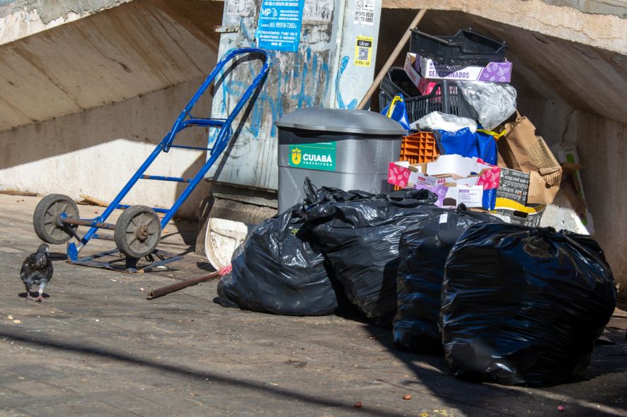 Outro comerciante, dono de um comércio geral no Centro, afirmou que os lojistas são orientados a levar o lixo até um contêiner localizado em frente à loja Riachuelo, mas que a estrutura é insuficiente para atender a demanda da região.