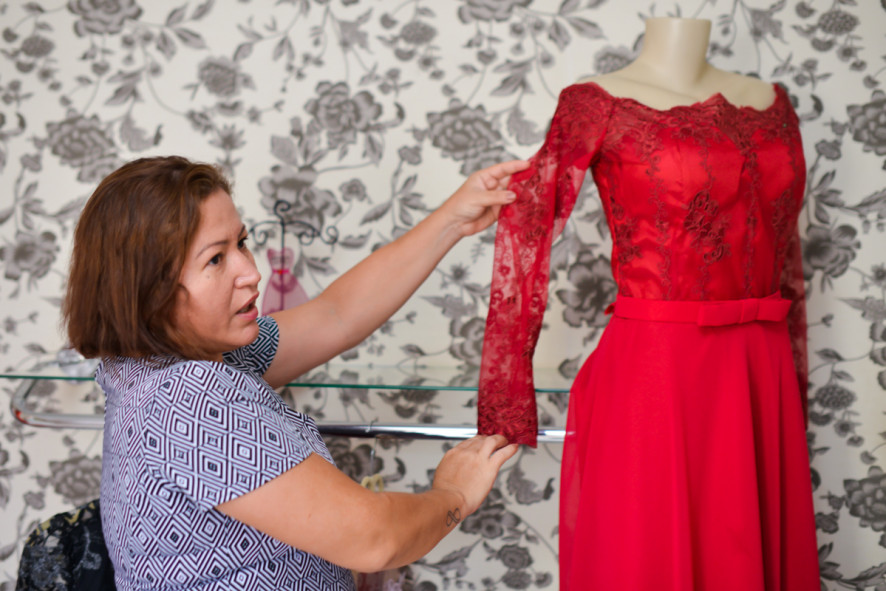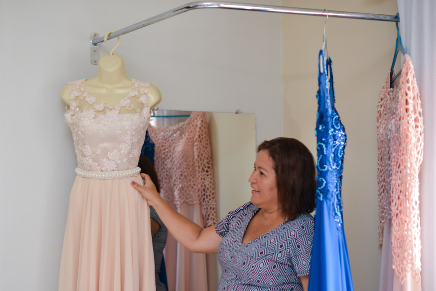 Há três anos, Marvilei Ribeiro Fretes, de 48 anos, decidiu que daria um passo a mais na carreira de costureira. Ela largou o “faz de tudo” para se dedicar aos vestidos de festa em um ateliê que funciona dentro da sua casa, no Bairro Coophamil, em Cuiabá. Além de conquistar clientes com cortes e acabamentos impecáveis, o preço também se tornou um diferencial.