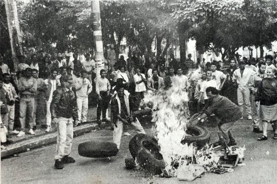 Fotos que ilustram o livro mostram cenas de protesto, enfrentamento à Polícia, pneus queimados e até prisão.