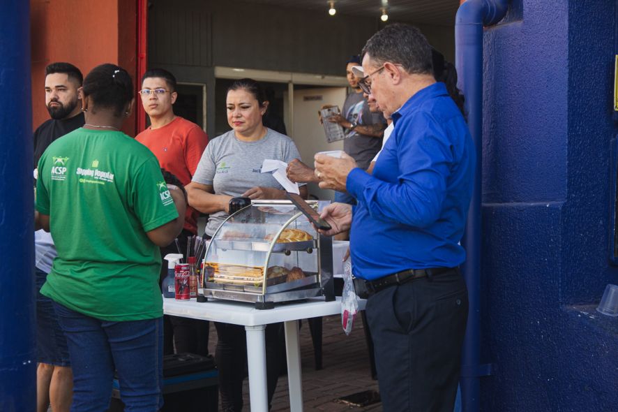 Não era nem metade manhã de quarta-feira e eles já tinham vendido todos os salgados. Orgulhoso, o comerciante mostrava o isopor vazio. “Ainda ficamos na incerteza se ia ter cliente ou não. Mas Graças a Deus ontem e hoje vendemos tudo”, disse.