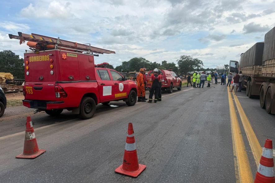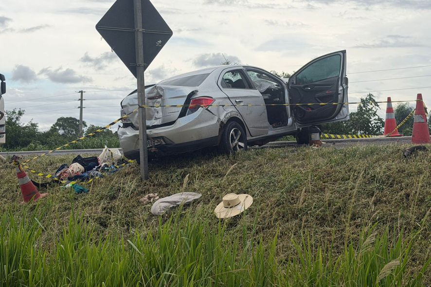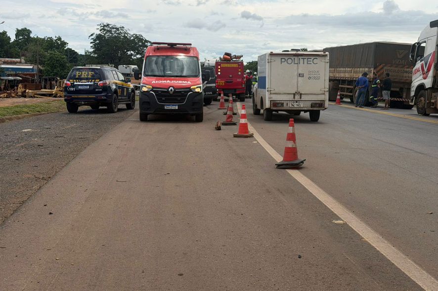 Dois homens, ainda não identificados, morreram na manhã desta sexta-feira (20) após uma colisão envolvendo dois carros e uma carreta na BR-364, em Várzea Grande.