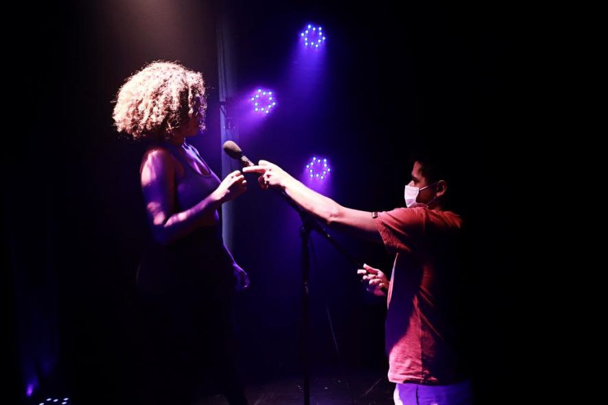 Edilaine Duarte, que é premiada no cinema pelo curta-metragem ‘A gente nasce só de mãe (2017)’, volta “aos palcos” – ainda que nas telas – pela primeira vez como protagonista de uma peça teatral. Em um único trabalho, a atriz canta, dança, declama poesias e ainda manipula formas animadas, explorando diversas técnicas de expressão cênica. Para isso, ela recebe preparação corporal de Elka Victorino e preparação vocal de Rô Leão.