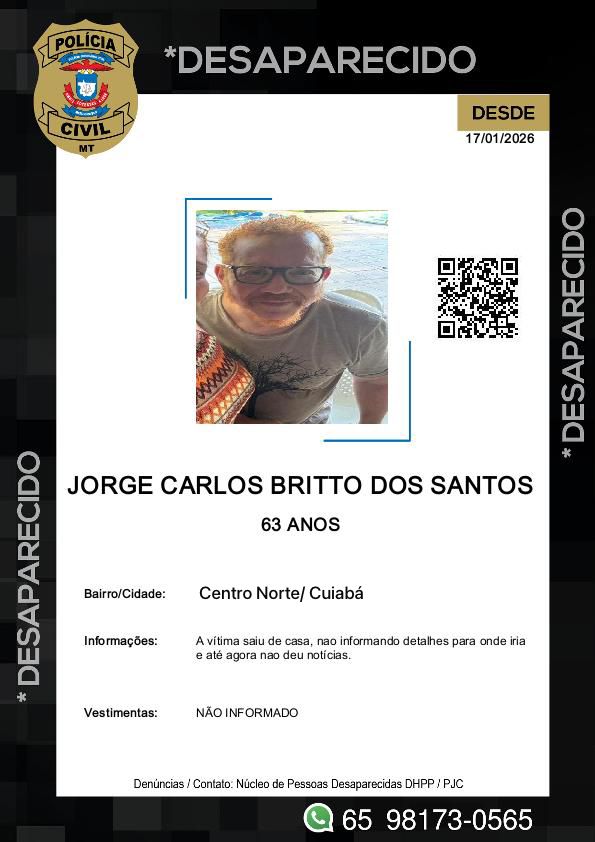 Para contribuir com qualquer informação sobre o paradeiro da vítima, basta entrar em contato com a Polícia Civil pelo número 197 ou pelo telefone (65) 98173-0565.