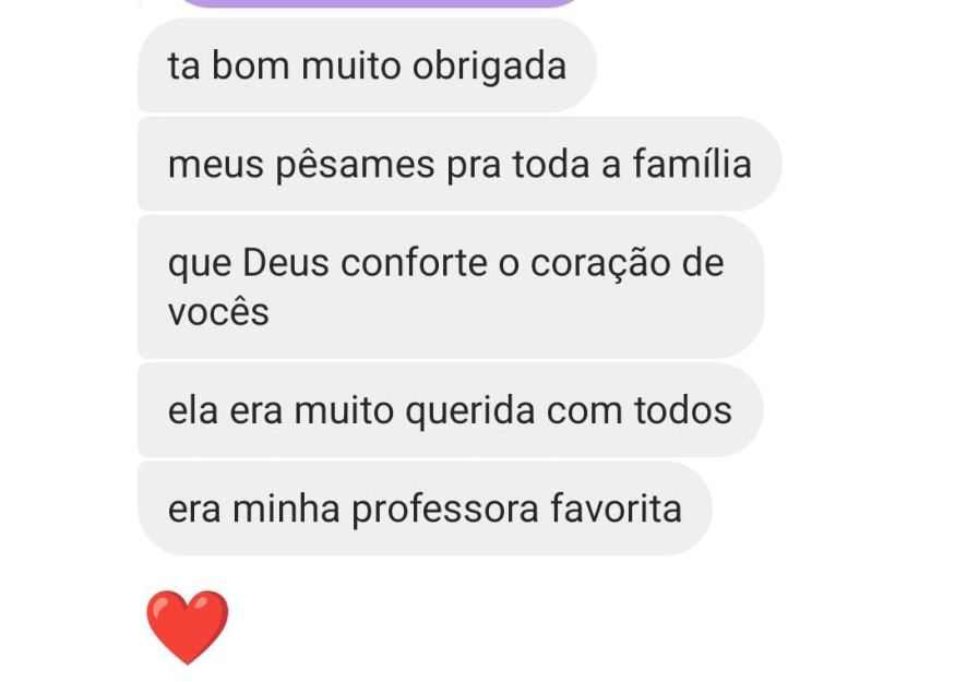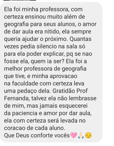 Além da presença, a família de Fernanda também recebeu muitas mensagens de carinho e pesar pela partida repentina da professora.