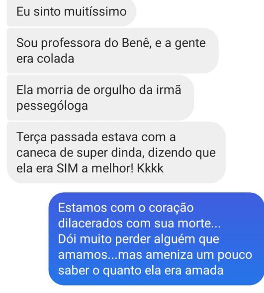 Já na segunda-feira (16) à noite, as irmãs conversaram pela última vez, ocasião em que Fernanda procurou ajuda para familiares do marido, que estavam lidando com luto. Segundo Flávia, a prática de zelar pela família era uma das melhores qualidades da professora.