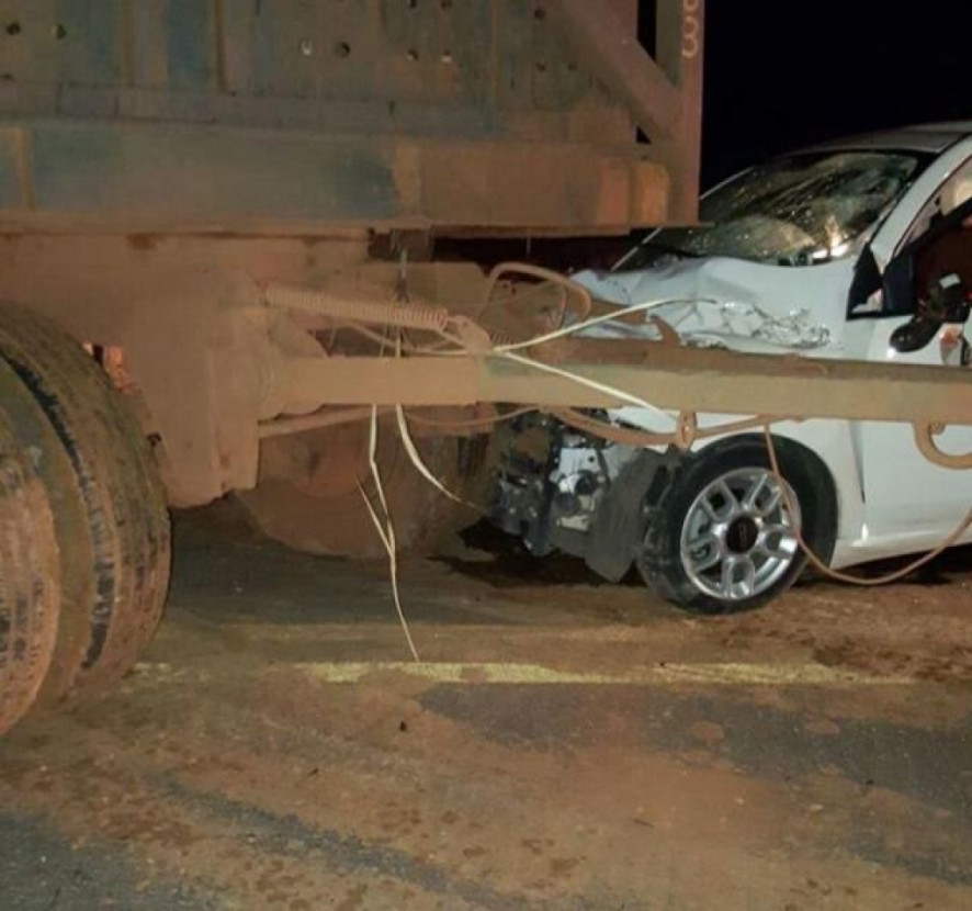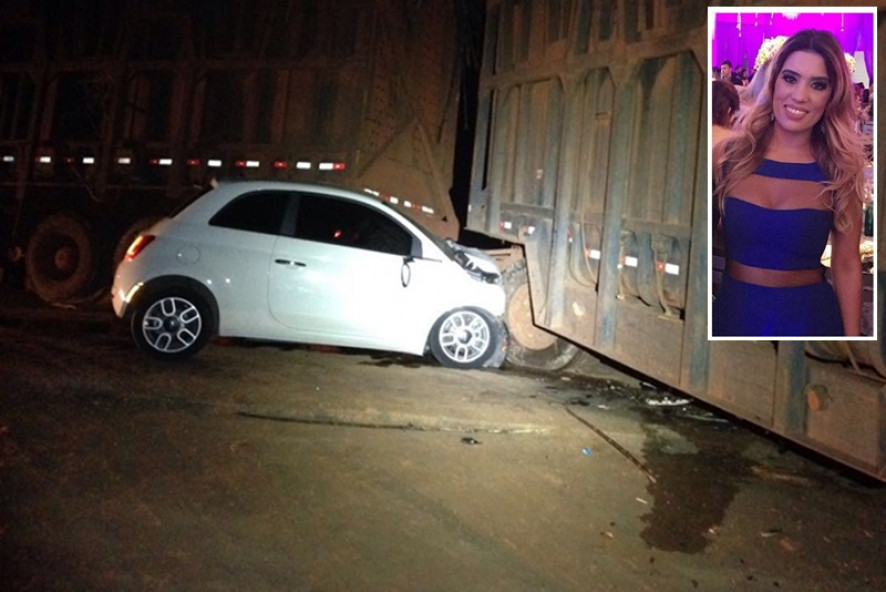 O carro em que Bruna estava, um Fiat 500, acabou atingindo a lateral do caminhão.