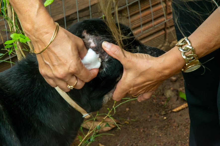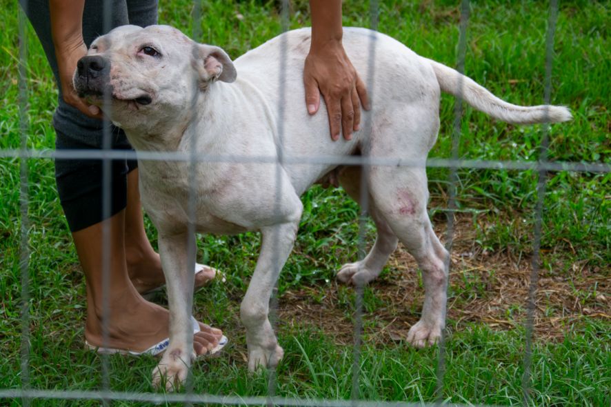 Ela relatou que muitos cães chegam feridos por disputas nas ruas ou vítimas de maus-tratos.