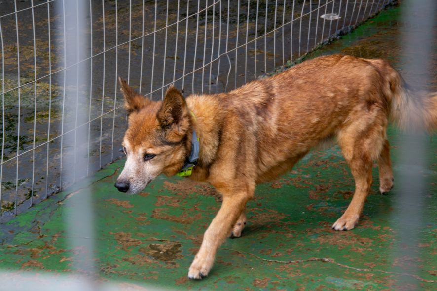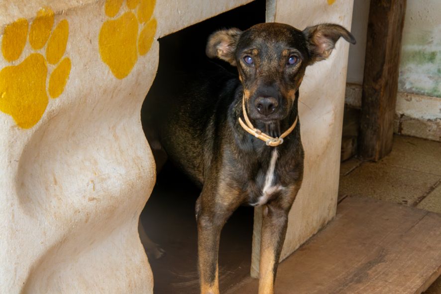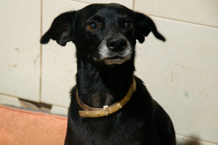 A cadela Louvada, que tem leishmaniose e é residente fixa da ONG Amor Animal