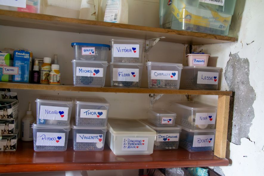 “Já resgatamos cachorro abandonado duas vezes, cadela atacada no mato, animais com leishmaniose, cães esfaqueados e até vítimas de abuso. São histórias muito duras. A leishmaniose causa feridas e insuficiência renal e o tratamento é caro, mas não podemos simplesmente virar as costas”.