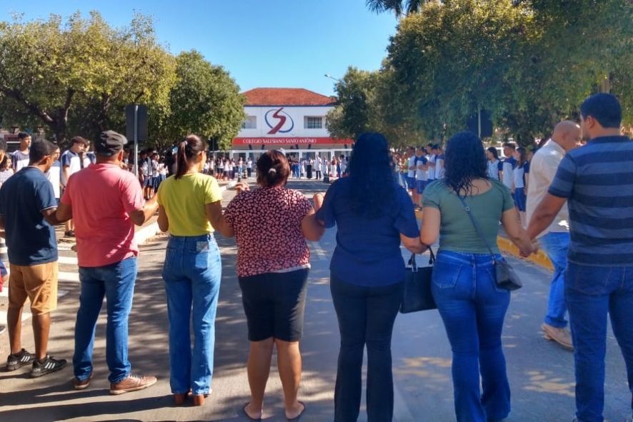 Familiares, alunos e colegas de profissão do professor Celso Odinir Gomes, de 60 anos, desaparecido há uma semana em Cuiabá, se reuniram na manhã desta quinta-feira (9) no Colégio Salesiano Santo Antônio, em homenagem ao profissional.