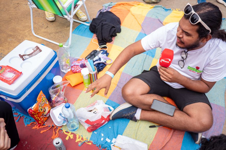 Além da distribuição das pulseiras, os fãs têm dividido alimentos e água, ajudando a cuidar dos pertences de quem precisa se ausentar momentaneamente.