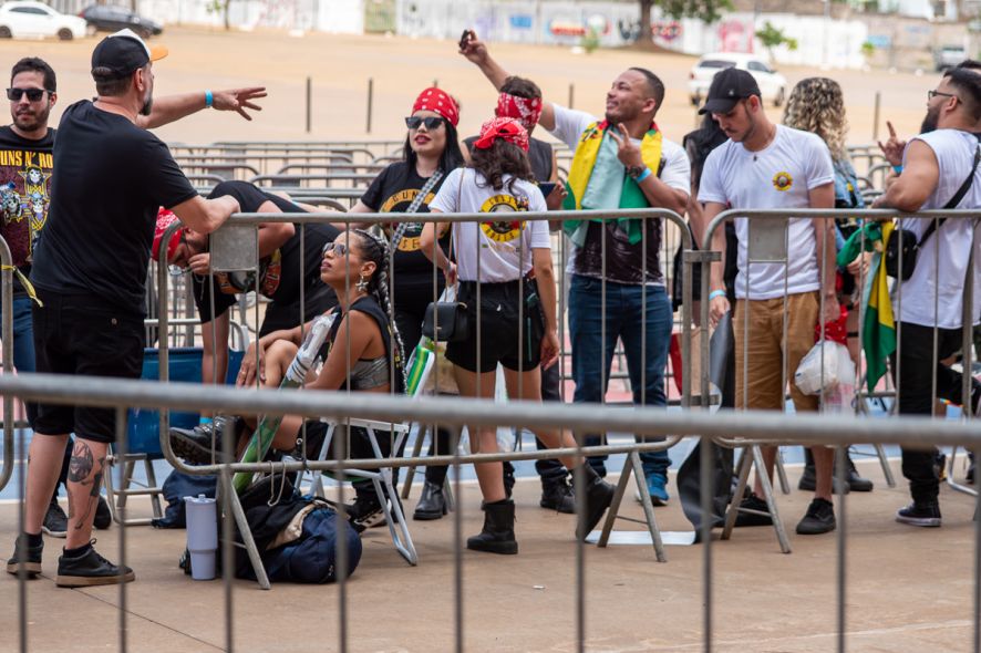 As primeiras filas de fãs para o show do Guns N’ Roses começaram a se formar na manhã desta sexta-feira (31), nos arredores da Arena Pantanal, em Cuiabá. Para garantir o bem-estar até o momento da apresentação, organização e companheirismo passaram a dominar o espaço até a abertura dos portões, às 17h.