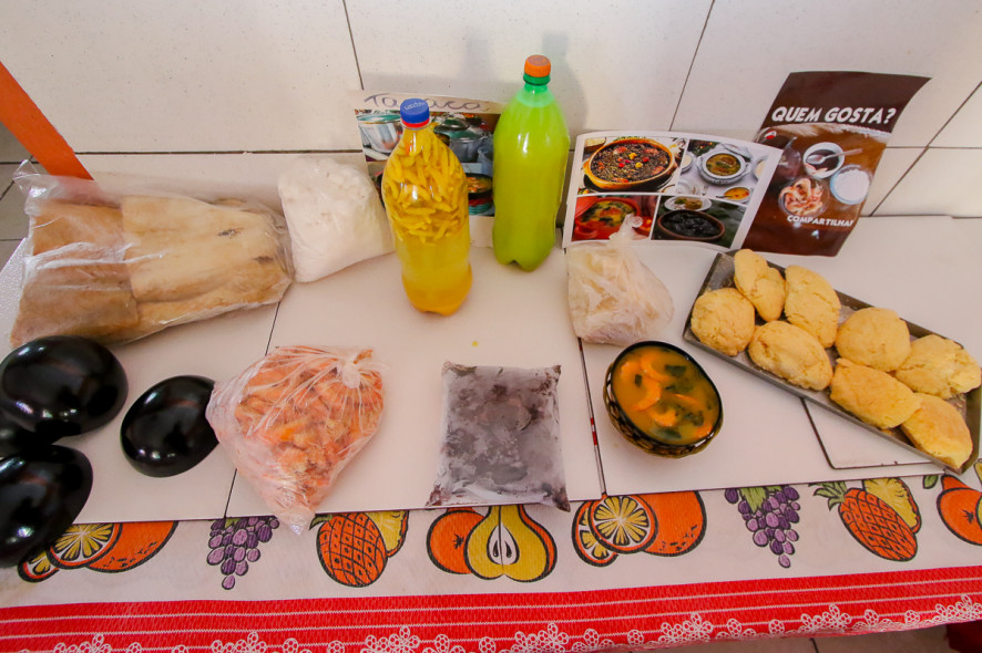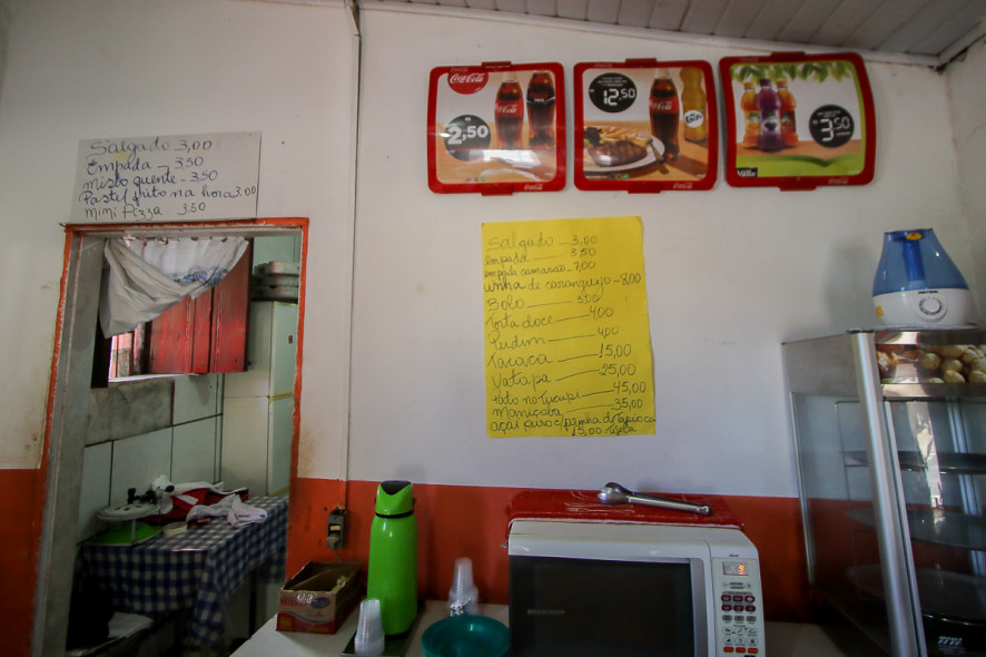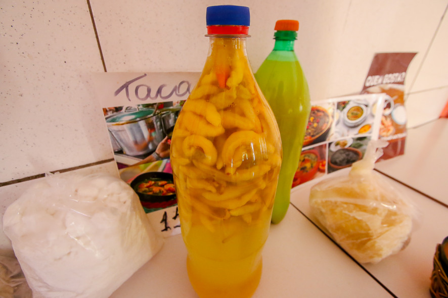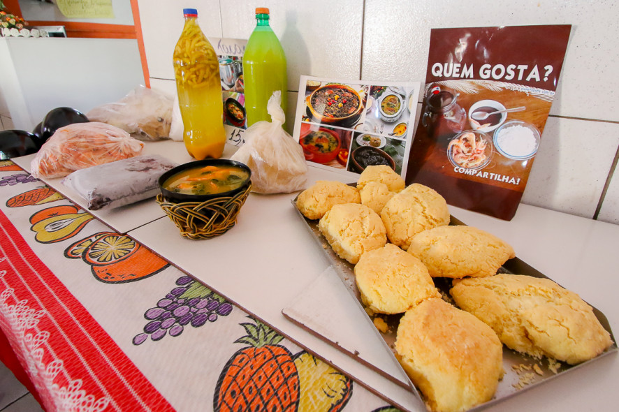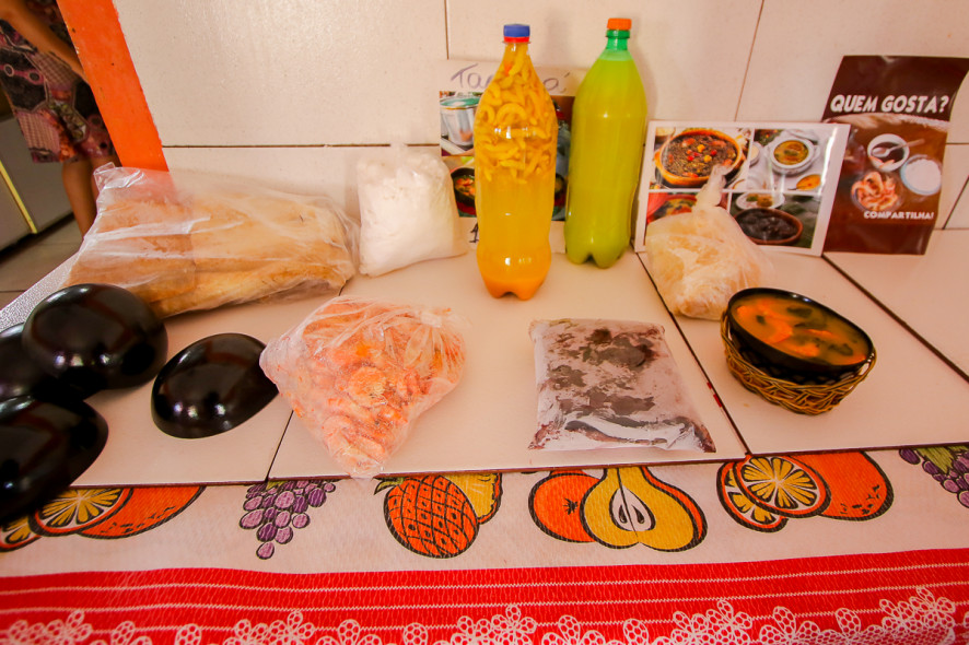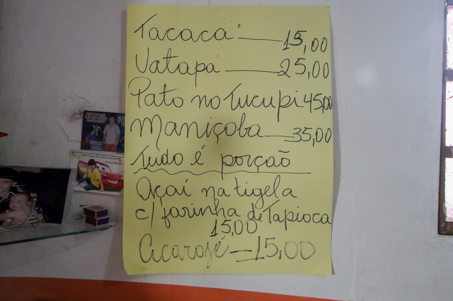 O estabelecimento vende suas iguarias para viagem. “Temos jambu, tucupi, camarão seco, cupuaçu e açaí. Tudo para levar pra casa”.