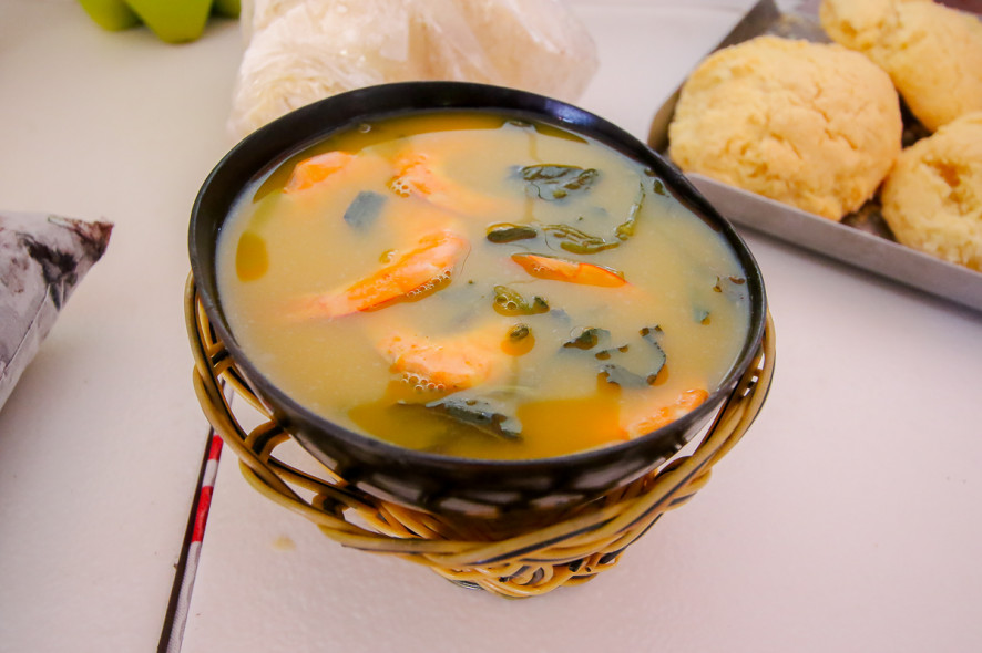 Mas dentre todos, o mais famoso é o tacacá, que é um caldo servido quente, feito com tucupi, jambu, camarão e goma de tapioca cozida. O prato é servido em cuias e pode ser encontrado em qualquer esquina no Pará.