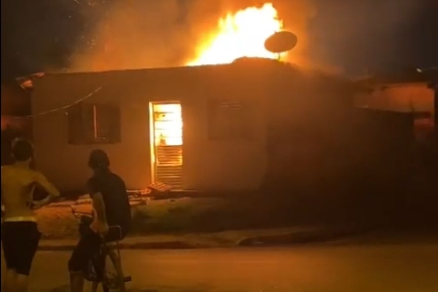 Um incêndio destruiu uma casa do Bairro São Benedito, em Várzea Grande, na noite desta terça-feira (12). Moradores da região se assustaram e gravaram vídeos mostrando as chamas destruindo o imóvel.