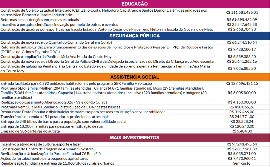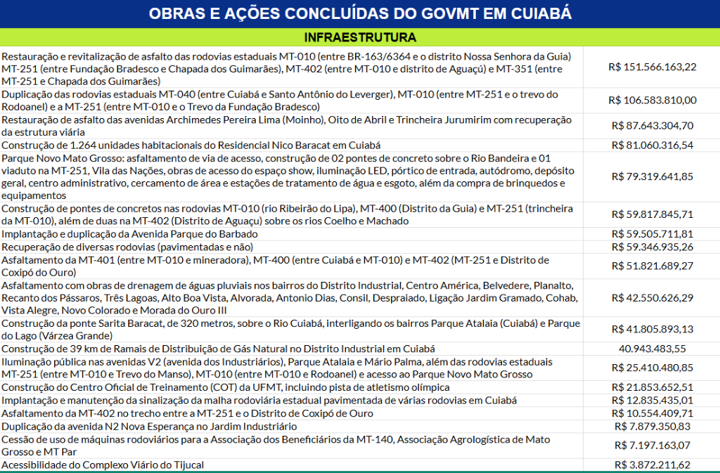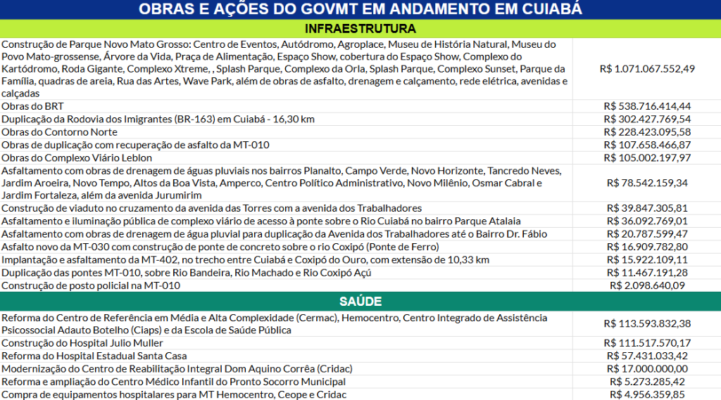 Confira os principais investimentos do Governo de Mato Grosso em Cuiabá: