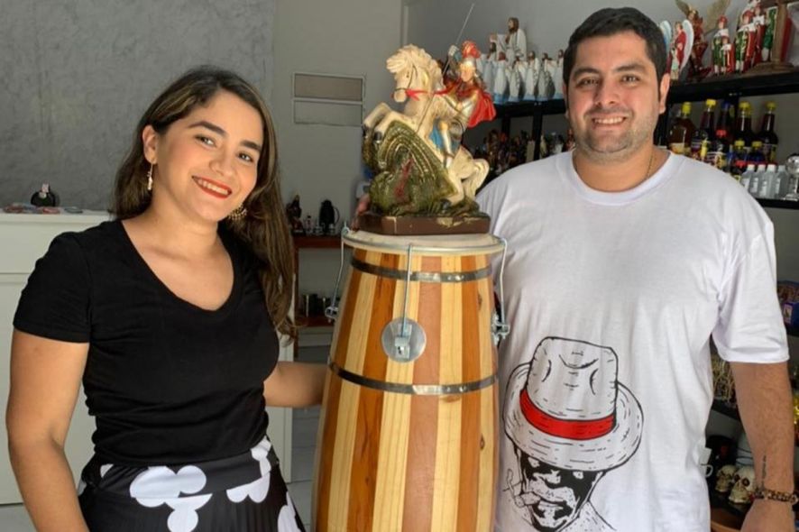 Empreender em meio à crise foi uma das grandes conquistas do casal Bruno Cesar Lourenço Teixeira, 30, e sua esposa Karla Vanessa Resende de Alencar Teixeira, 31. Diante das dificuldades impostas pela pandemia, eles aproveitaram o período de fechamento do comércio em julho de 2020, para abrir o próprio negócio e explorar um nicho de mercado que está em expansão na Capital mato-grossense, que é o de artigos religiosos.
