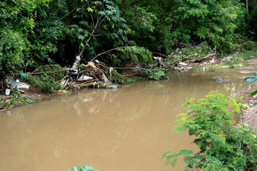 Na Rua Boa Esperança, paralela ao Córrego do Barbado, mora Elca Pereira, de 61 anos. Lá, a água não chegou a invadir o interior da propriedade, mas parou no batente da porta e foi o suficiente para fazê-la passar mal.