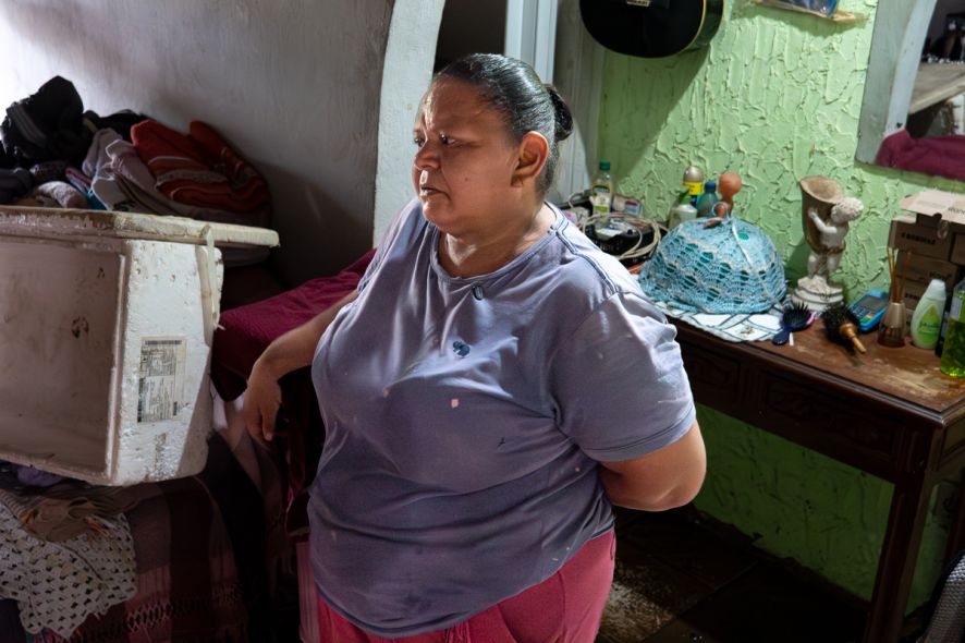 “Perdi guarda-roupa, perdi cama, meu esposo perdeu o carro dele, aparelho de som. Ele é pedreiro e perdeu as ferramentas, perdeu makita, furadeira. Perdi a geladeira, perdi o freezer. É doído isso”, disse.