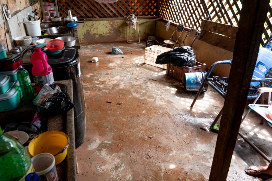 Quando a reportagem chegou, Ilda já havia limpado toda a casa. Em uma das camas, estavam dezenas de roupas empilhadas, retiradas da parte de baixo do guarda-roupa e da cômoda, que despencou.