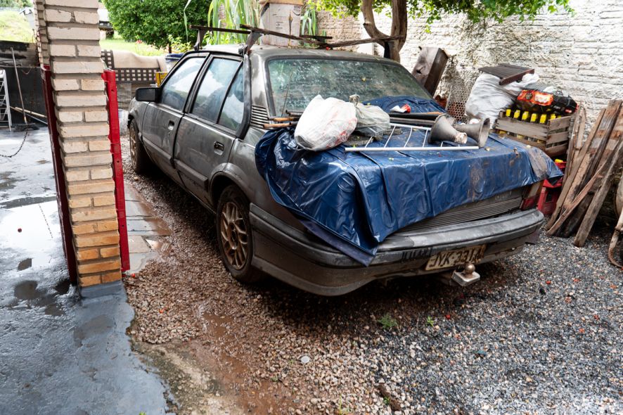“Começou a chover e, quando vi que a água estava em cima da muretinha, fui tirando as roupas da parte de baixo do guarda-roupa, fui jogando pra cima e nisso a água só foi entrando. De repente, a porta abriu sozinha”, contou.