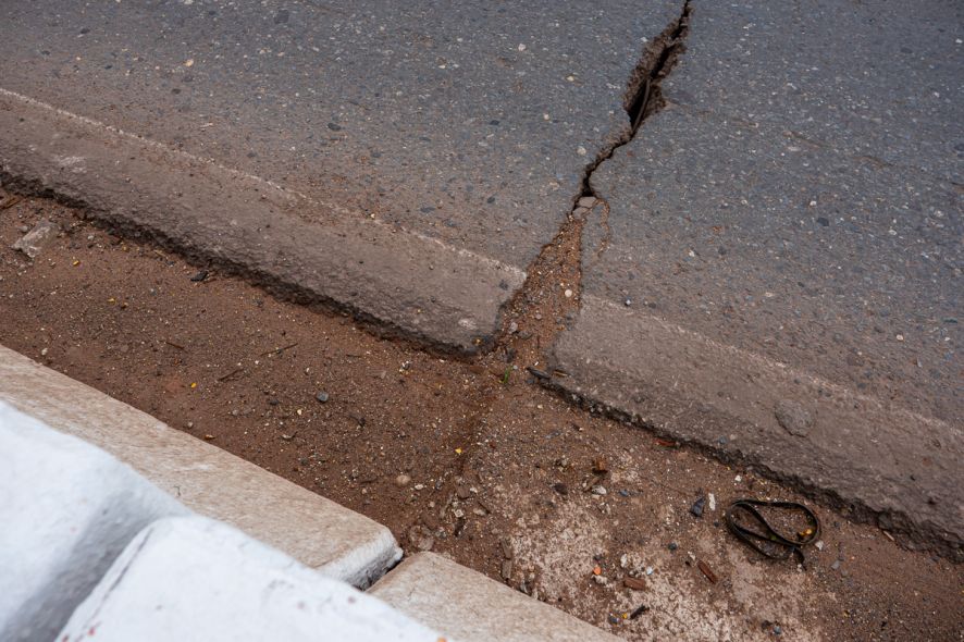 Por cima da junta é passada uma camada de asfalto, então o que parece uma rachadura é o asfalto sobre a junta, que se movimenta