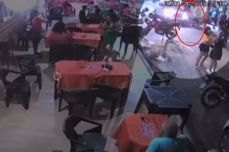 As imagens mostram que o carro não estava em alta velocidade, mas invadiu a calçada e atingiu o grupo. Após o impacto, o condutor seguiu por alguns metros e deixou o local.